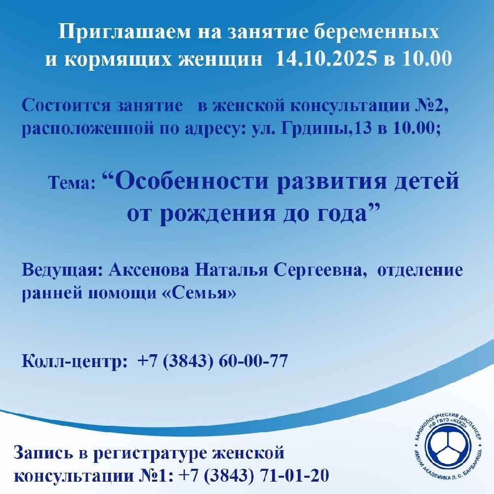 Приглашаем на занятие беременных и кормящих женщин 14.10.2025