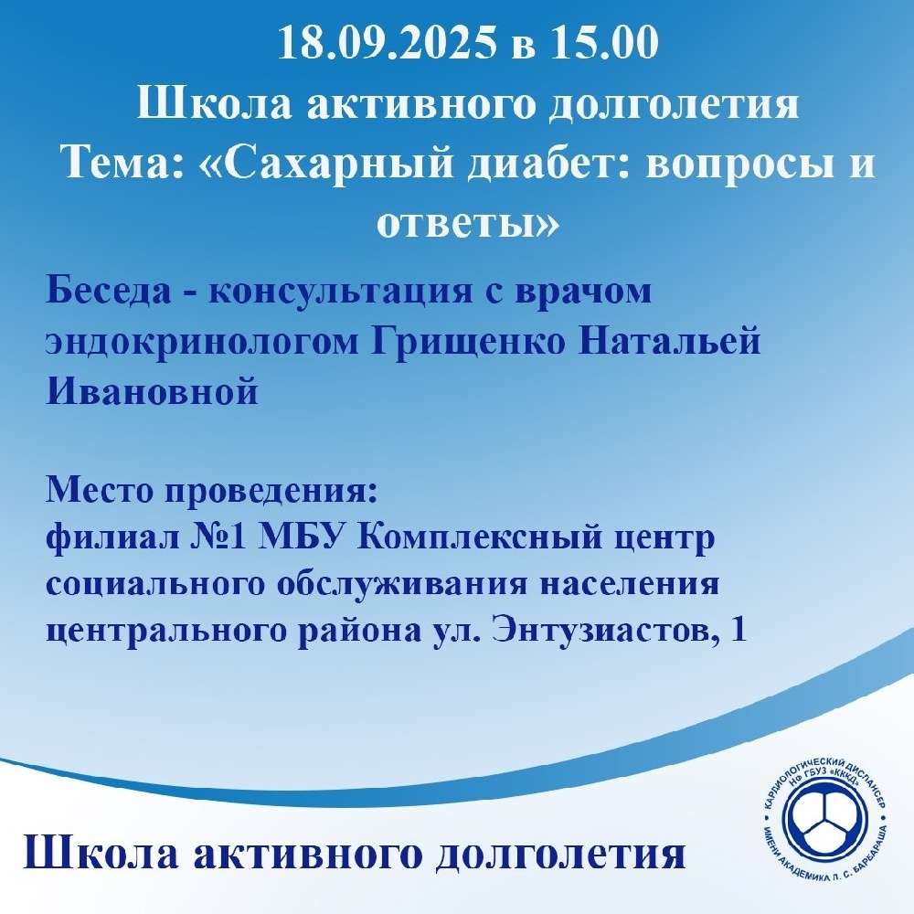 Встреча пройдет в формате беседы-консультации с практикующим врачом-эндокринологом Грищенко Натальей Ивановной.